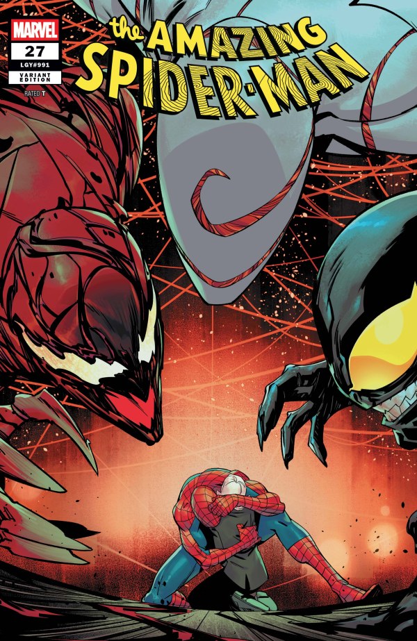 – The new villain TORMENT, now in league with the Symbiote CARNAGE, and left nothing but death and destruction in their wake. What is SPIDER-MAN willing to do to stop the targeted killing spree? What is VENOM willing to do? All eyes are on the exciting conclusion!