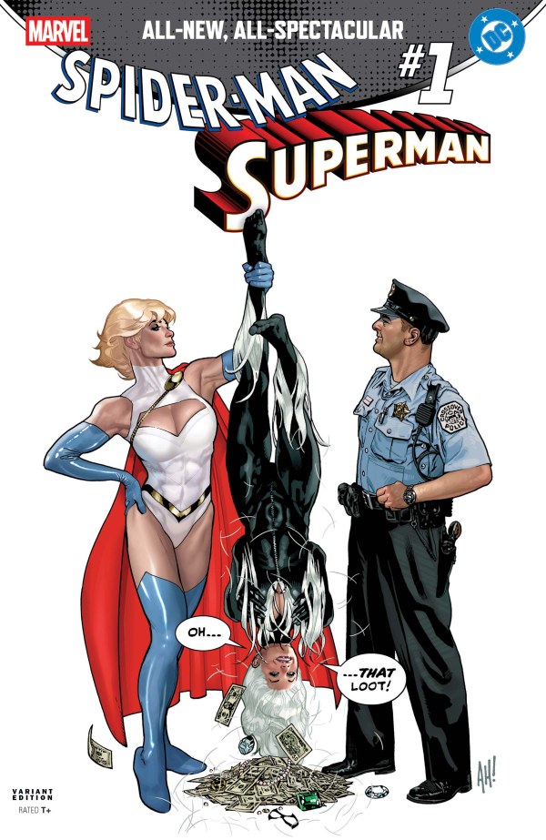– And now the MARVEL COMICS edition of the crossover sensation! Top creators like BRAD MELTZER, PEPE LARRAZ, DAN SLOTT, MARCOS MARTIN, BRIAN MICHAEL BENDIS, LOUISE SIMONSON, and many more treat you to outstanding stories merging the worlds and characters of SUPERMAN and SPIDER-MAN for all new stories! Available in a variety of VARIANT EDITION COVERS!