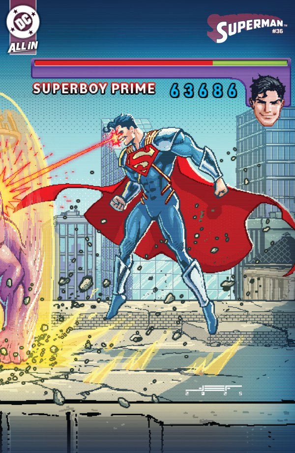– As a result of the outcome of the KING OMEGA TOURNAMENT, SUPERMAN is missing! But METROPOLIS and the DCU are not without a MAN OF STEEL as SUPERBOY PRIME steps up! Can this hero turned villain with awareness of comic book logic truly begin his redemption arc here?